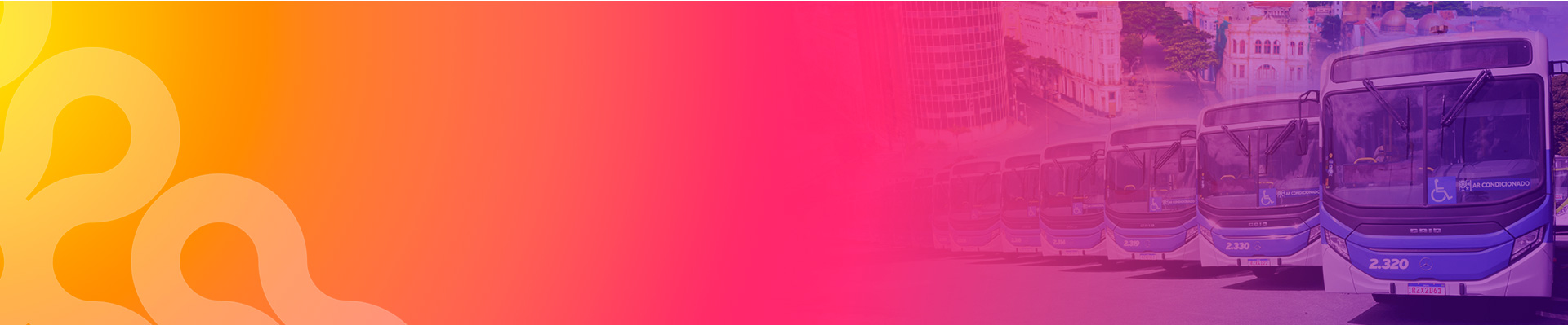 mais de 64 ônibus modernos que possuem ar-condicionado, monitores internos, GPS,